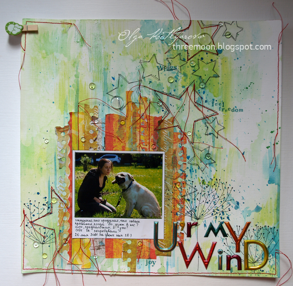 | Оля, ага, акварельный И укропчик нарисован чёрной ручкой. Из скрап материалов там получается только несколько полосок бумаги и твои капельки :))